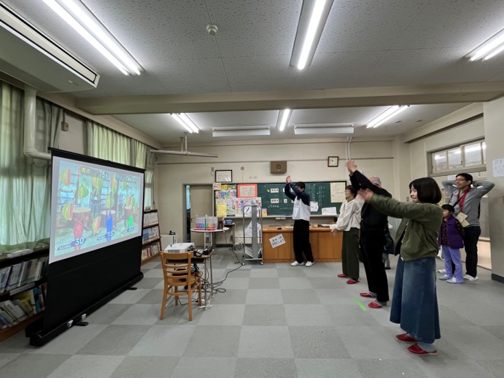 これまでも「駅スポ‼」等でAI姿勢解析「Sportip Pro」を使った診断を行うなど、スポーツの敷居を下げるためにテクノロジーの活用を意識してきました。2024年のスポーツチャレンジフェスティバルでは、TOPPAN株式会社の協力で運動指導効率化ツール「Loop Training System for 部活」を用いて、指導者不足でも上達できる体験を提供。更に2025年は、大学として地域社会の貢献を目的とした公益財団法人ペガサス財団の助成金に採択され、非接触・非装着型モーショントレーニングツール「TANO」を使って、老若男女が一緒に軽運動を楽しめる場を提供しました。約300種のコンテンツから、中部圏で「TANO」を取り扱う豊丸産業株式会社の協力で相撲や牧割りなどのゲームを自動ループ。学生1人でも運営できる体制を整えました。今後は各学区イベントの場などで活用していきます。