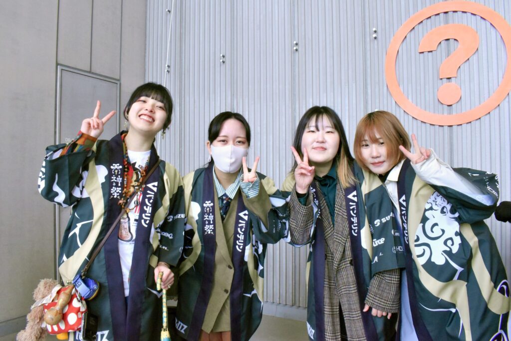 雷神祭当日は24,000名を超える来場者数を記録し、雷神の和太鼓を背中に背負ったデザインの法被を着た来場者が会場を埋め尽くしました。法被デザイン以外にも選手の方々のバースデーバナー50種強の制作・御朱印帳の表紙デザイン等、多様なプロジェクトに取り組んでいます。また、こうした産学・官学連携の様子を各種学校SNS等で発信することで学校・企業の両社の取り組みの周知に繋げるなど、広報活動に関しても積極的に行っております。
